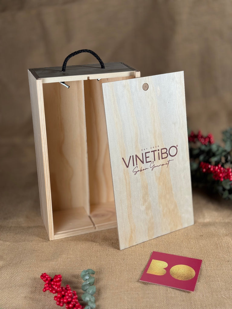 Caja Estuche Madera con serigrafía tamaño ideal para 2 botellas, con separador - VINETiBO