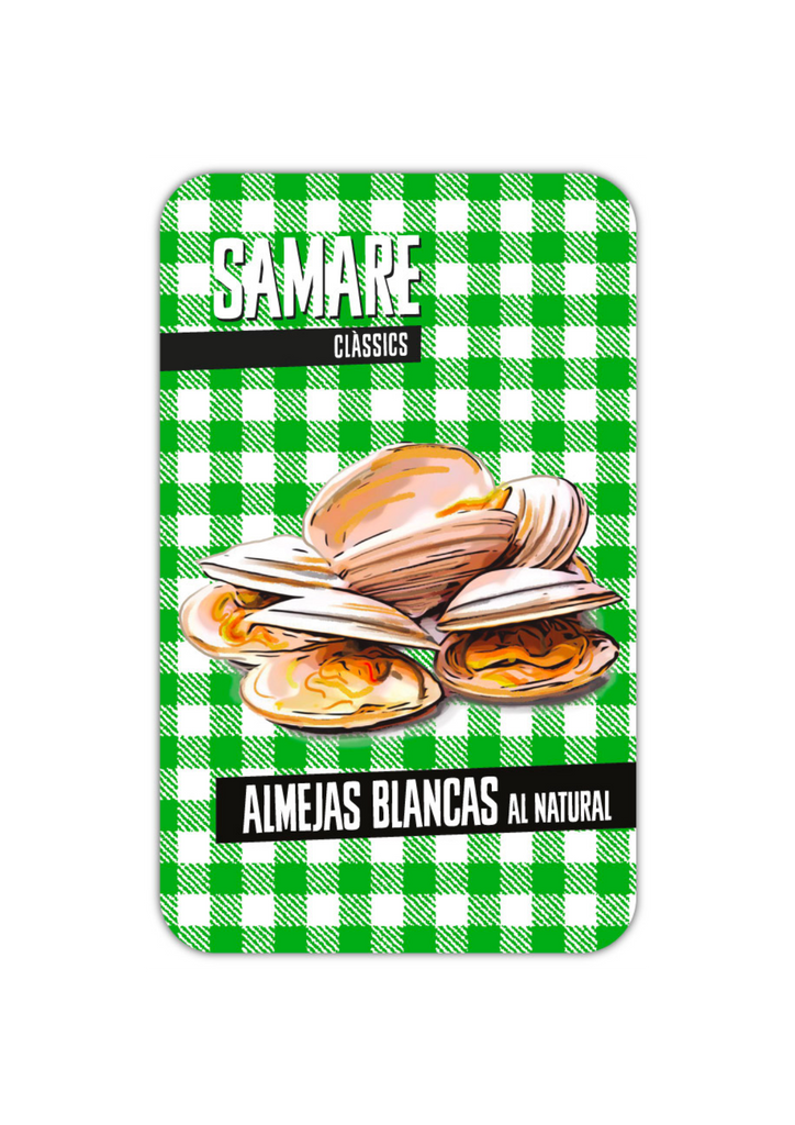 Las almejas blancas del Atlántico son un auténtico bocado gourmet conocido por su textura fina y su dulzor natural. En la gama Clàssics de Conservas Samare, se presentan tal y como son: 100% naturales, sin aditivos ni artificios. Solo almeja, agua y sal, respetando al máximo su esencia marina.
