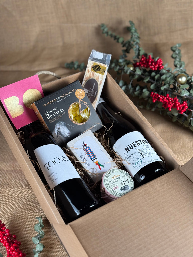 - Caja kraft con asa, viruta y tarjeta Navidad