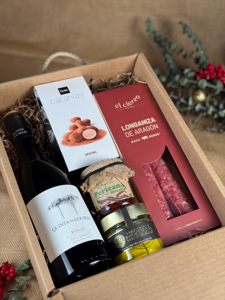 • Caja kraft con asa, viruta y tarjeta Navidad