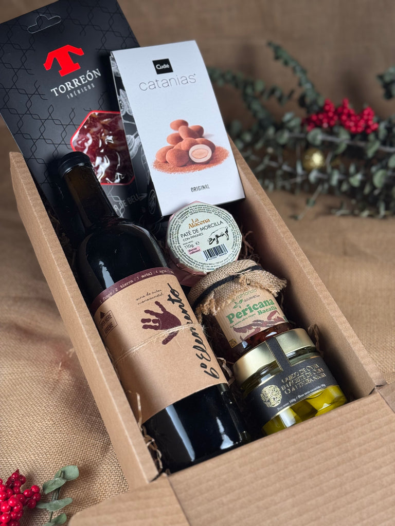 • Caja kraft con asa, viruta y tarjeta Navidad